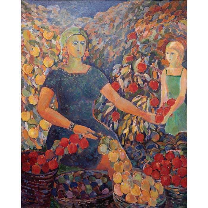 In this painting, I did not simply want to show women gathering fruit; I tried to express the beauty of labor, the kindness of motherhood, and the abundance of the earth.Every brushstroke was made with emotion, so that the viewer could feel not only the brightness of the colors but also the light and breath of life in that day.